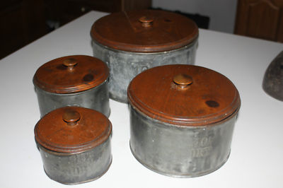 Title (ebay affiliate link): 4 Nesting Antique Country Store Dry Goods Measures Containers