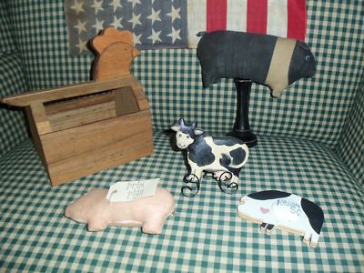 Title (ebay affiliate link): Lot of 5 Primitive Country Farm Decorations Chicken ~ Pig ~ Cow