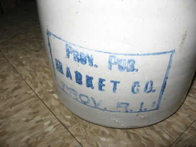 Antique Providence RI Stoneware Jug Blue Lettering Prov Pub Market Co. Prov RI