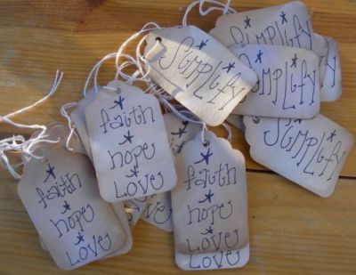 Title (ebay affiliate link): Primitive Hang tags lot 25 medium Simplify & Faith Hope Love