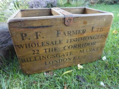 Title (ebay affiliate link): WOODEN BILLINGSGATE LONDON FISHMONGERS SHELLFISH CLAMS TRUG FISH CRATE BOX