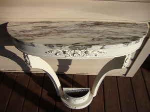 Title (ebay affiliate link): Grandmoms OLD MARBLE top wood wall table with light NICE!