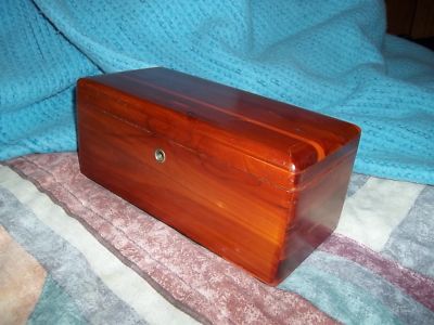 Title (ebay affiliate link): Antique / Vintage Cedar Handmade Jewelry Box by Lane Furniture ca 1954 w lock