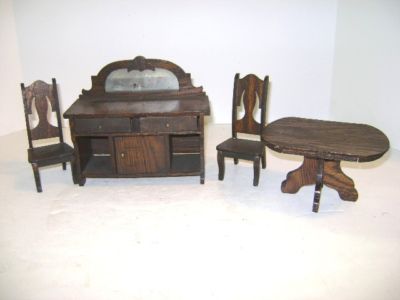 Title (ebay affiliate link): ANTIQUE CHILDS OAK WOOD DINING ROOM DOLL FURNITURE