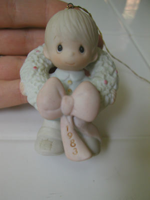 Title (ebay affiliate link): Precious Moments Christmas Ornament 1983 Surround Us With Joy Boy with Wreath