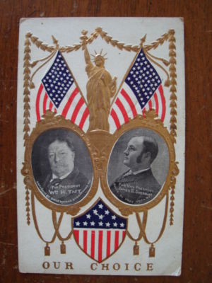Title (ebay affiliate link): OLD ORIGINAL VINTAGE PHOTO EMBOSSED POSTCARD TAFT SHERMAN PRESIDENTIAL CAMPAIGN