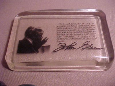 Title (ebay affiliate link): John Glenn 1983-84 GLASS PAPER WEIGHT Announcing Presidential Candidacy/Photo
