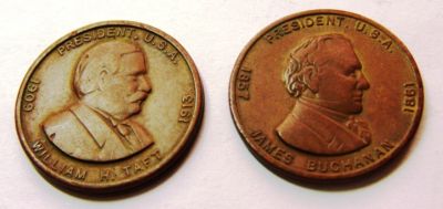 Title (ebay affiliate link): 2 Coins with Presidnt Profile William H. Taft & James Buchanan
