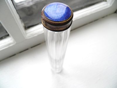 Title (ebay affiliate link): Stunning ART DECO vanity blue copper glass toothbrush powder perfume holder?