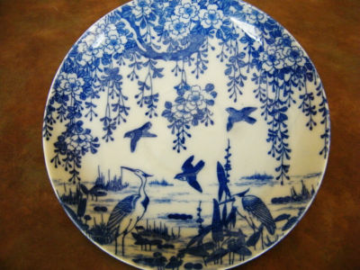 Title (ebay affiliate link): Blue & White Bone China Tea Cup & Saucer marsh scene cranes,flowers,plants Asian
