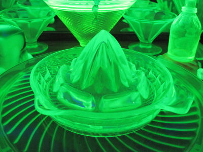 1930's VASELINE GLASS JUICER/REAMER (DEPRESSION)