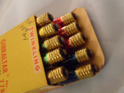 Title (ebay affiliate link): VINTAGE 10 TWINKLING GIBRALTAR CHRISTMAS LAMPS 6-8v LIGHT BULBS NOS #778