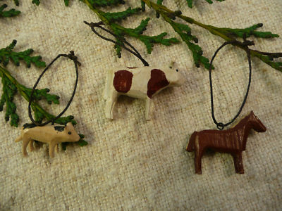 Title (ebay affiliate link): Vintage Carved Wood Animals - Set of 3 - German - Putz - Pig, Cow, Horse