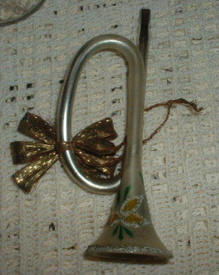 Title (ebay affiliate link): Vintage Glass Horn Christmas Ornament White With Painted Flower