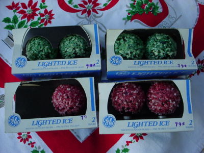 Title (ebay affiliate link): 7 Vintage C-7 Lighted Ice Frosted Snowball Bulbs Christmas Lights 4 Green/3 Red
