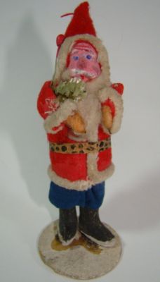 Vintage 4 inch SANTA FIGURE Clay Faces Paper Mache Spun Cotton Ornament
