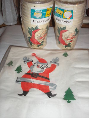 VTG;SANTA 16 PAPER CUPS & PKG.NAPKINS