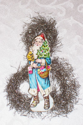 Amazing Antique Die-Cut Santa Clause & Victorian Tinsel Christmas Ornament!!!