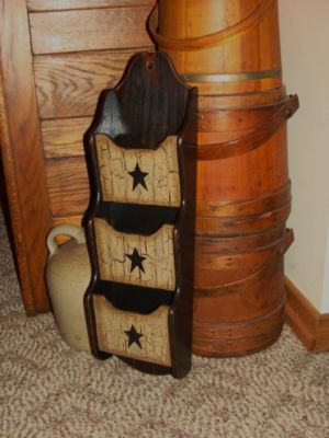 Title (ebay affiliate link): Primitive Wood Bill & Letter Holder Crackled Distressed With Black Stars