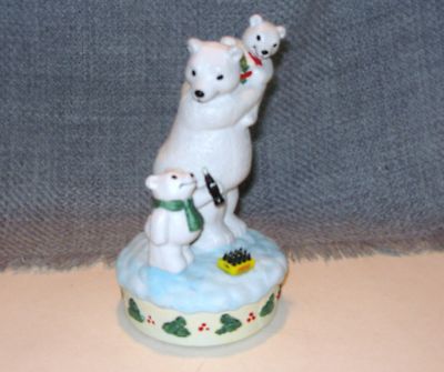 Title (ebay affiliate link): Coke advertising 1996 Coca Cola Christmas Music Box Polar Bear Mom & Cubs on ice