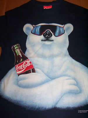 Title (ebay affiliate link): Coke Coca Cola 1994 Full Front Print Polar Bear PROMO Blue T-Shirt Adult Large