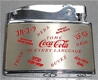 Title (ebay affiliate link): ~~ Coca Cola Coke in Every Language Balboa Flat Advertising Lighter ~~