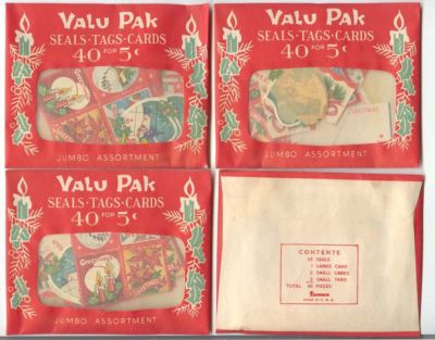 Five 1940's Vintage Dennison Value Pack Christmas Seals - Tags - Cards Unopened