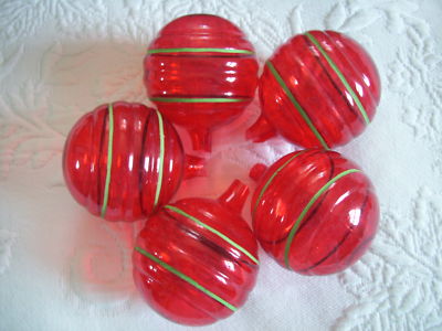 Title (ebay affiliate link): 5 WWII Round Ornaments Unsilvered paper caps red w/white stripes Premier Box