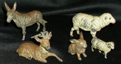 LOT OF 5 VINTAGE METAL NATIVITY ANIMALS MADE IN GERMANY