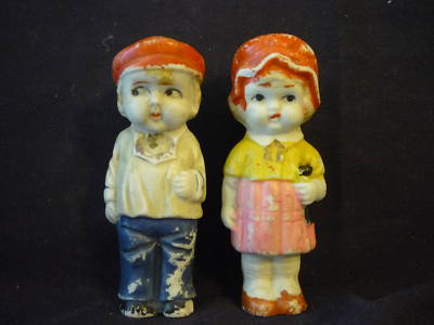 Antique Bisque Boy And Girl Figurines, Japan