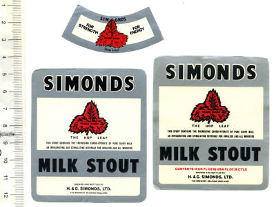 3 English beer labels - H & G SIMONDS LTD, THE BREWERY, READING - MILK STOUT
