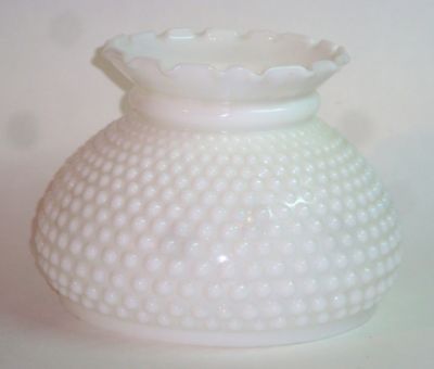 VINTAGE MILK GLASS HOBNAIL HURRICANE LAMP SHADE - EXC