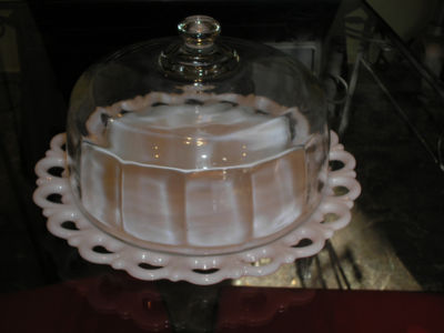 GORGEOUS DOME CAKE PLATE WITH MILK GLASS BASE