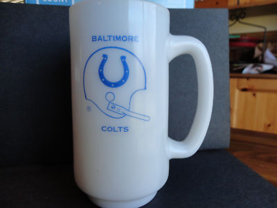 Title (ebay affiliate link): Vintage Baltimore Colts White Milk Glass Handled Mug 5 1/2" Tall Helmet Logo