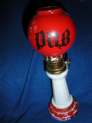 Title (ebay affiliate link): Vintage Miniature BAR PUB Red Globe Milk Glass Oil Lamp ~Marked Wick Adjustment~