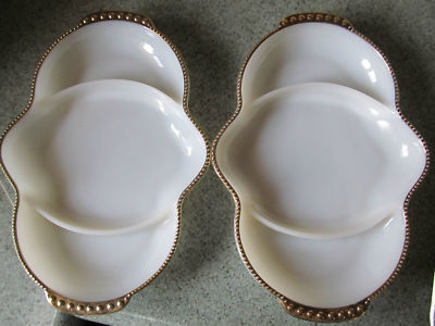 Title (ebay affiliate link): Set of 2 Vintage Oven Fire King Ware,Relish Dish,Milk Glass with Gold Trim