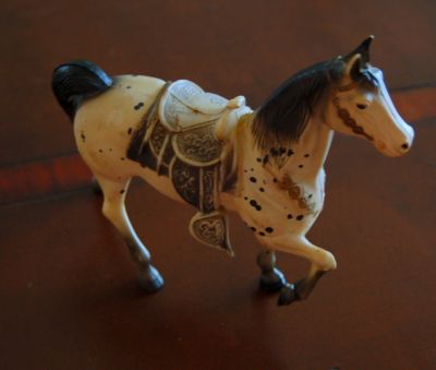 Title (ebay affiliate link): Vintage plastic 8" Appaloosa Horse Statue with Show Saddle n Bridle