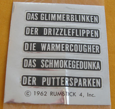 VINTAGE 1962 VOLKSWAGEN Rumstick Decals HUMOROUS EMBLEMS Very Fun!!