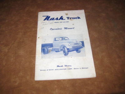 Title (ebay affiliate link): VINTAGE NASH TRUCK OPERATIONS MANUAL MODELS 3148 & 3248 NASH MOTORS