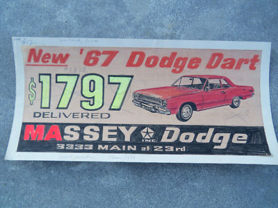 original artwork from dodge dealership not porcelain sign 1967 dart ad sketch