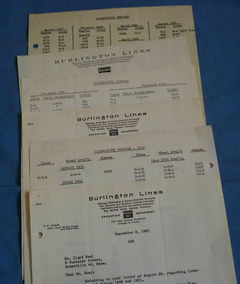 BURLINGTON, CHICAGO, QUINCY RAILROAD LETTERS 1951 -52
