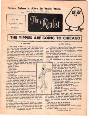 THE REALIST SEPTEMBER 1968 UNDERGROUND NEWSPAPER JERRY RUBIN ABBIE HOFFMAN