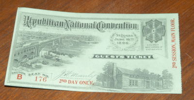 Title (ebay affiliate link): Republican National Convention Ticket 2nd Day June 16, 1896 St Louis W McKinley