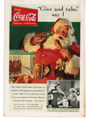 Title (ebay affiliate link): Original 1937 Christmas Coca Cola Coke Ad Advertisement Santa Claus Give Take