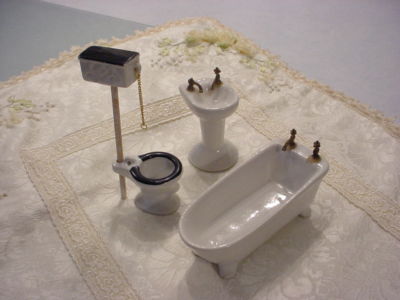 1950s Porcelain Bath Tub Sink Toilet DOLL ORIG Antique