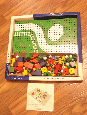 Title (ebay affiliate link): Vintage 1960s PLAYSKOOL LANDSCAPE PEG SET w/Wood Cars Trucks PEGS & BOOKLET