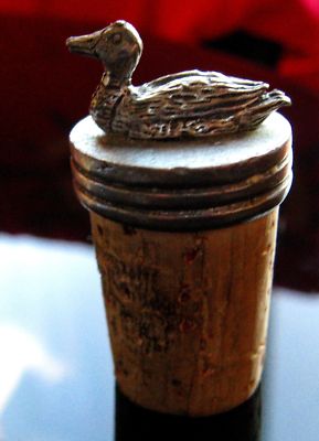 Vintage Duck on a cork stopper - nice Pewter, plated