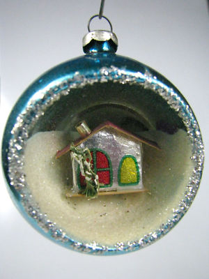 Title (ebay affiliate link): Vintage Scene 3D Diorama Panoramic WINTER HOUSE Glass Christmas Ornament Japan