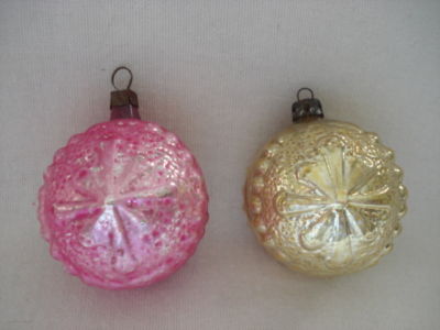 Title (ebay affiliate link): 2 Vtg German Figural Embossed Yo Yo Shaped Glass Xmas Ornaments Unique & 1 Pink