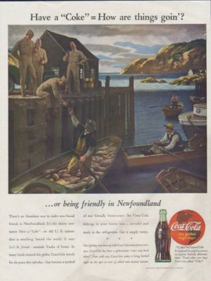 1944 WWII Coca-Cola COKE soda ad Army troops Newfoundland Canada